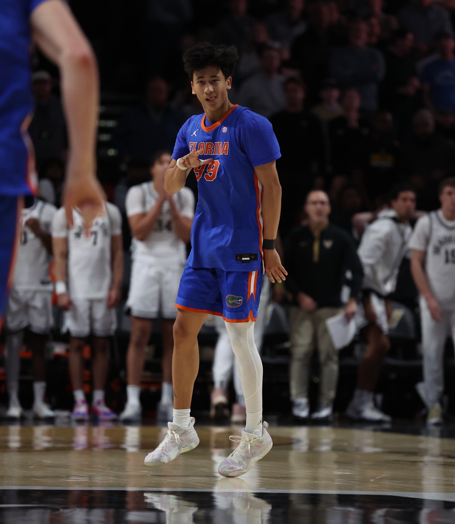 NASHVILLE, Tenn. – The day basically started with a knock on their hotel room door. Florida guards Xaivian Lee and Boogie Fland were interrupted from their routine pre-game rest to learn of a travel mix-up that left their blue Gators' road jerseys back in Gainesville. One was going to have to wear a nameless No. 99 and the other walk-on Cooper Josefsberg's No. 33.